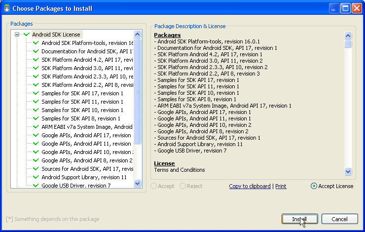 Accept License seçin. Install tıklayın.